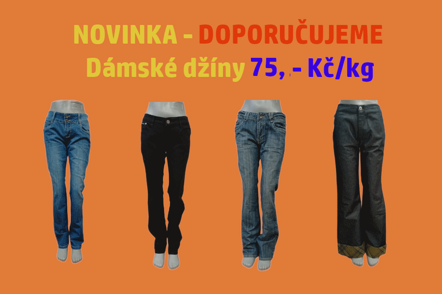 Naše mixy jsou dámské, pánské a dětské, dále jeans dámské i pánské, džínové bundy a kabelky.