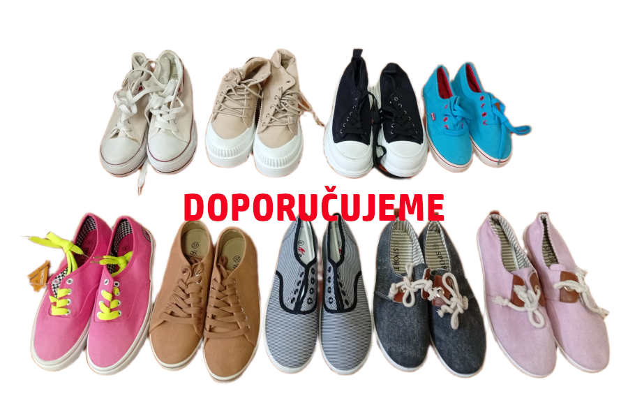 Nabízíme vám dámskou plátěnou obuv za cenu 95,- Kč/kg. Dámské plátěnky jsou ve velikostech 36-40, menší velikosti převažují