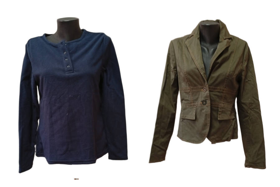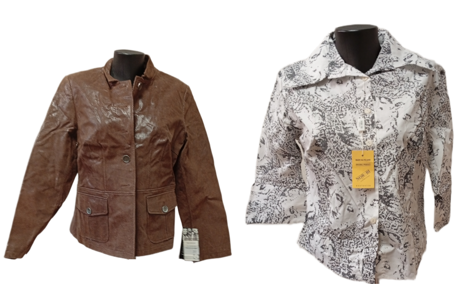 Balení obsahuje převážně bundy jaro/podzim (imitace kůže), dále zimní kabát, dámská trika a další